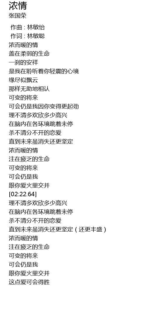 | [01:33.90] | 浓而暖的情 |