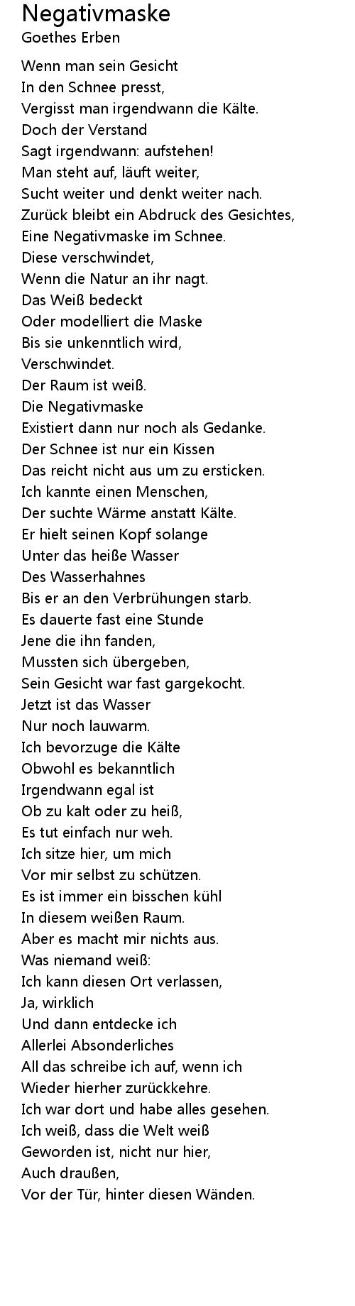 | Zurück bleibt ein Abdruck des Gesichtes, | |
