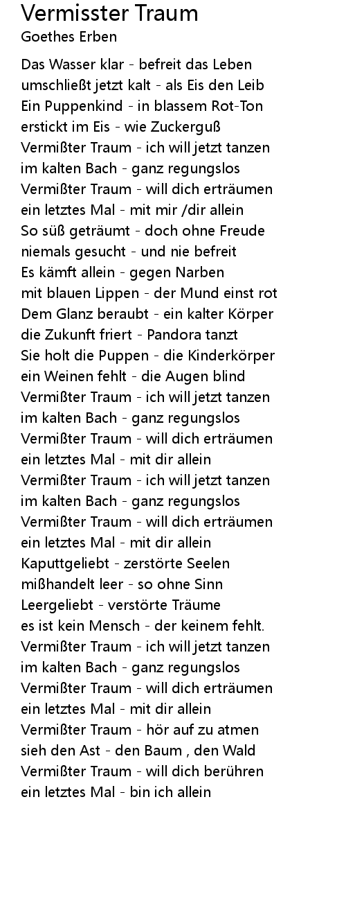| Vermißter Traum - will dich erträumen | |