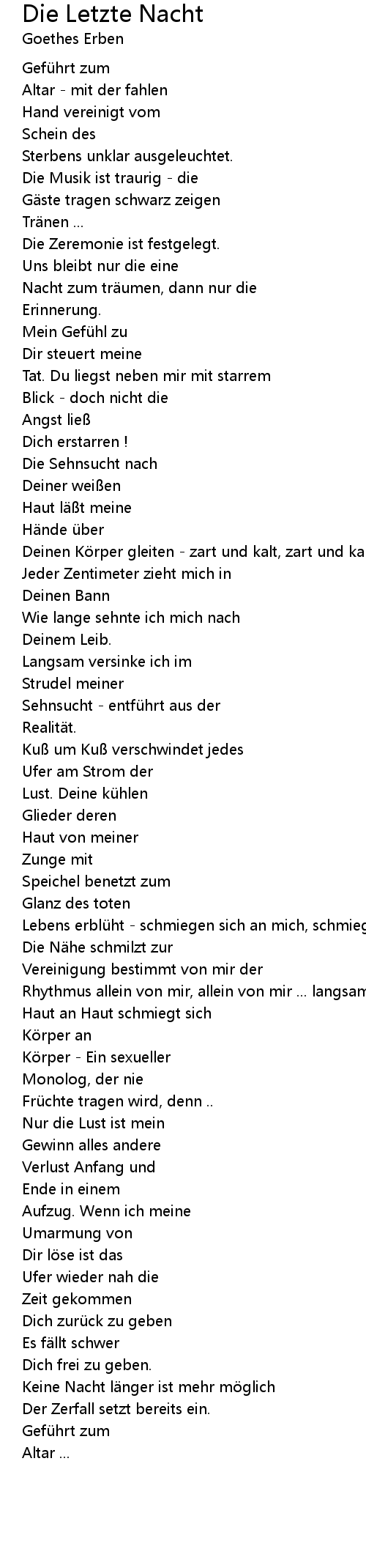 | Deinen K rper gleiten zart und kalt, zart und kalt ... | |