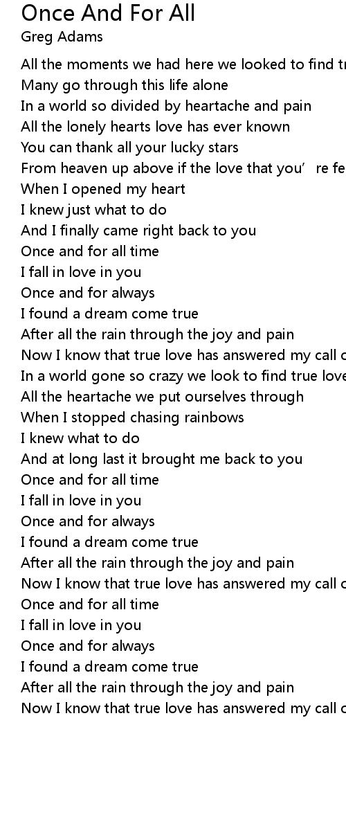 | Song | Once And For All |