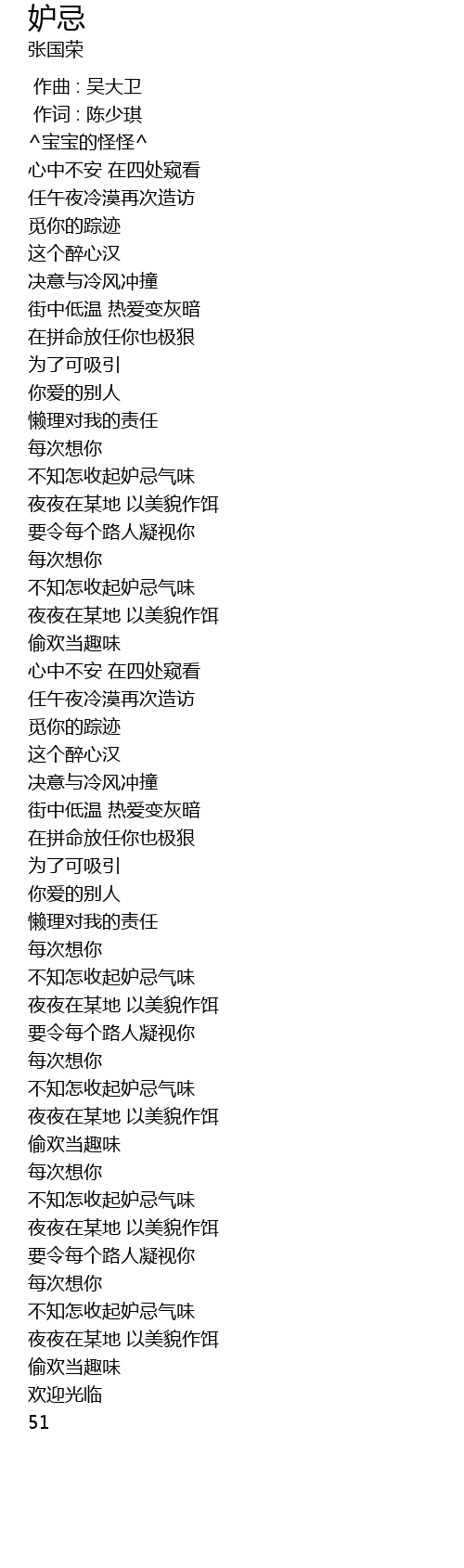 | [00:59.47] | 不知怎收起妒忌气味 |