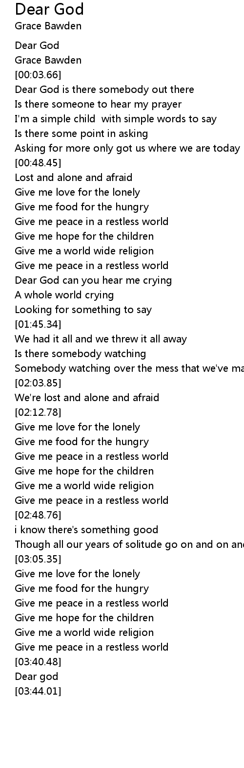 Dear God is there somebody out there |