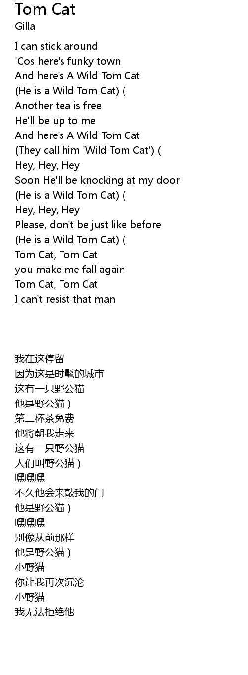 | [00:28.000] | They call him ' Wild Tom Cat' |