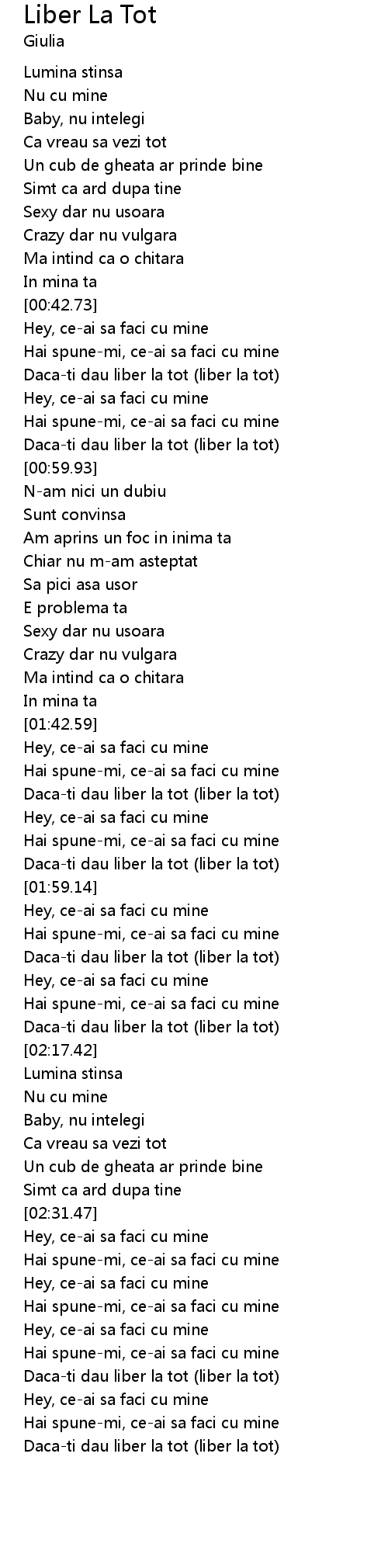 Daca-ti dau liber la tot (liber la tot) |