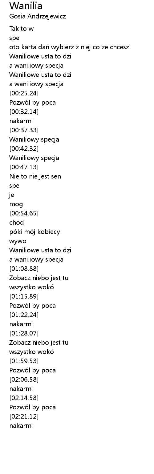 [01:13.06] wszystko woko ma wanilii smak.