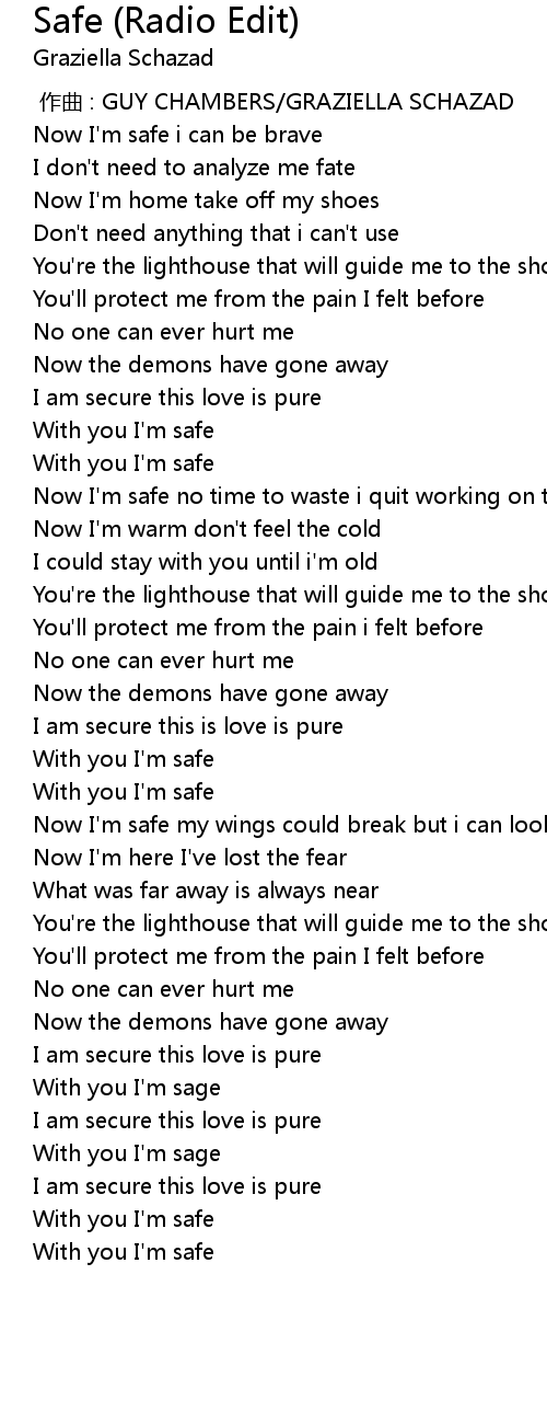 | [01:02.70] | With you I' m safe |