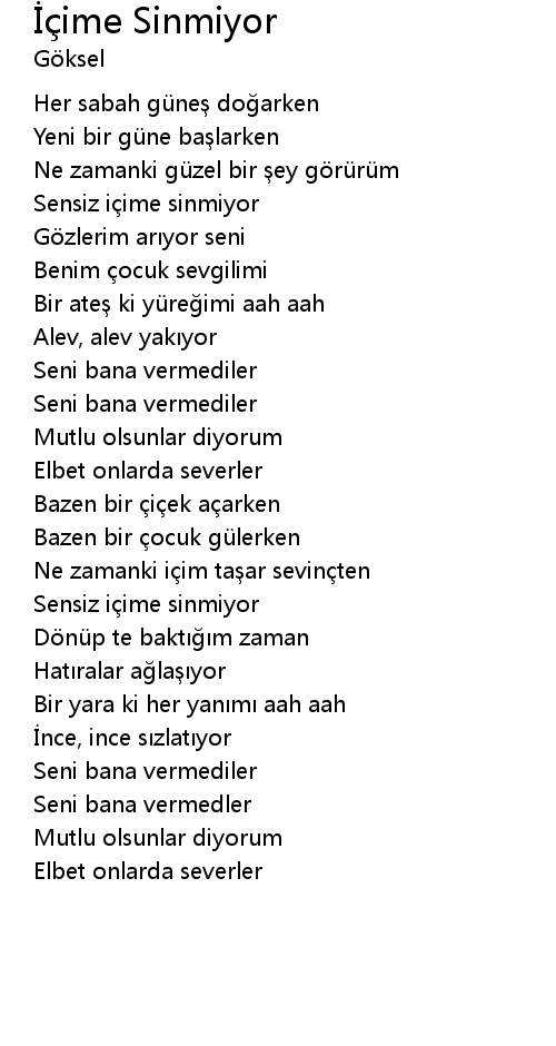 | Sensiz içime sinmiyor | |
