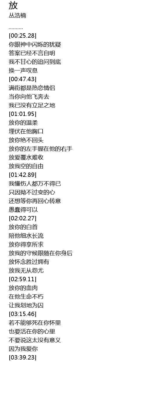 | [02:55.11] | fàng wǒ wú cóng yuàn yóu |