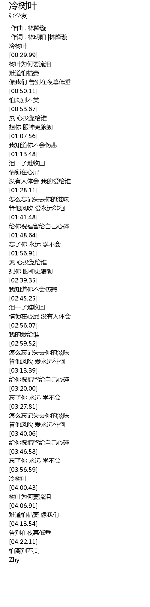 | [03:57.96] | 冷树叶 |