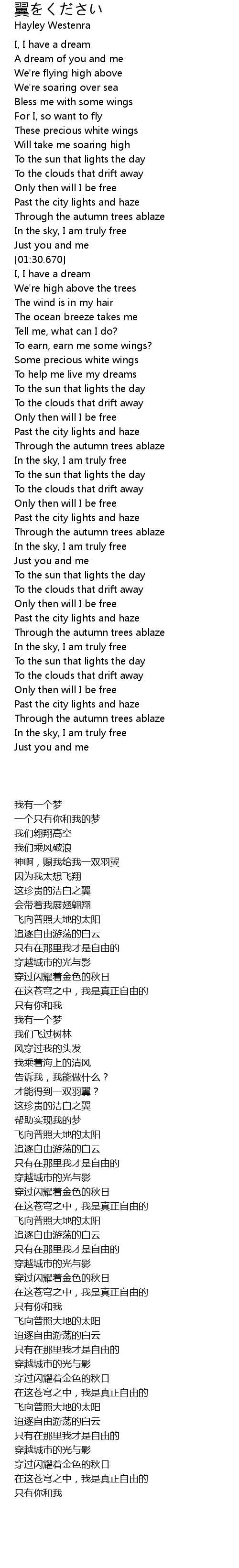 | [04:26.690] | In the sky, I am truly free |