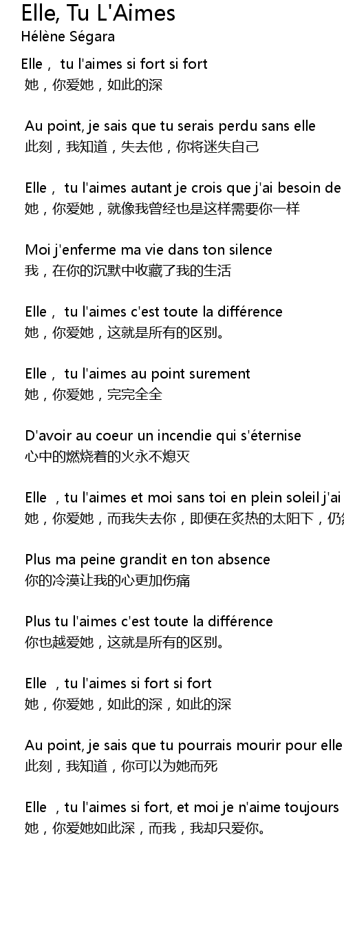 | Elle , tu l' aimes si fort si fort | |
