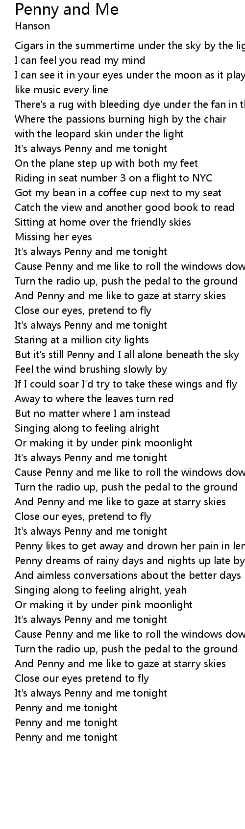But it's still Penny and I all alone beneath the sky |