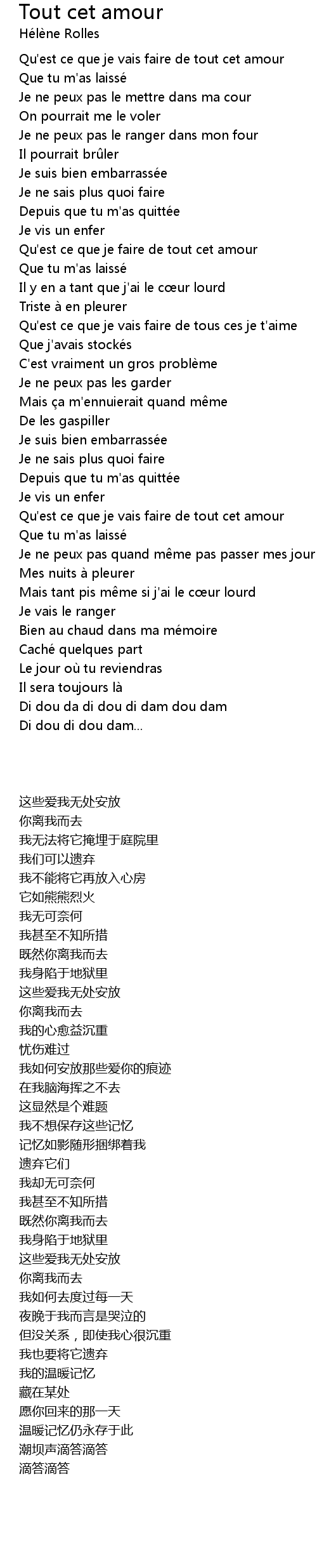 | [02:12.23] | Qu' est ce que je vais faire de tout cet amour |