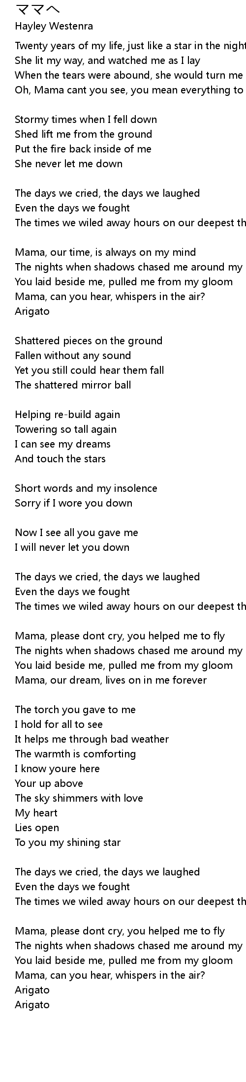 Mama, please dont cry, you helped me to fly |