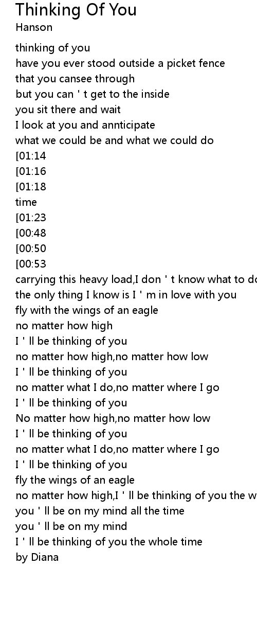 | [01:43] | I ll be thinking of you |