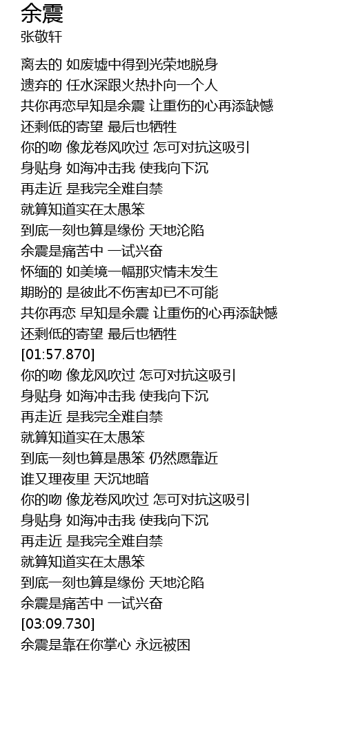 | [03:04.700] | 余震是痛苦中 一试兴奋 |