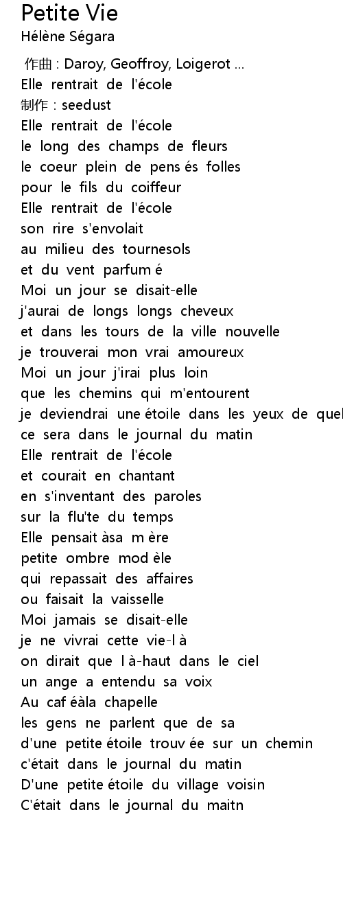 | [02:47.44] | d' une petite é toile trouv é e sur un chemin |