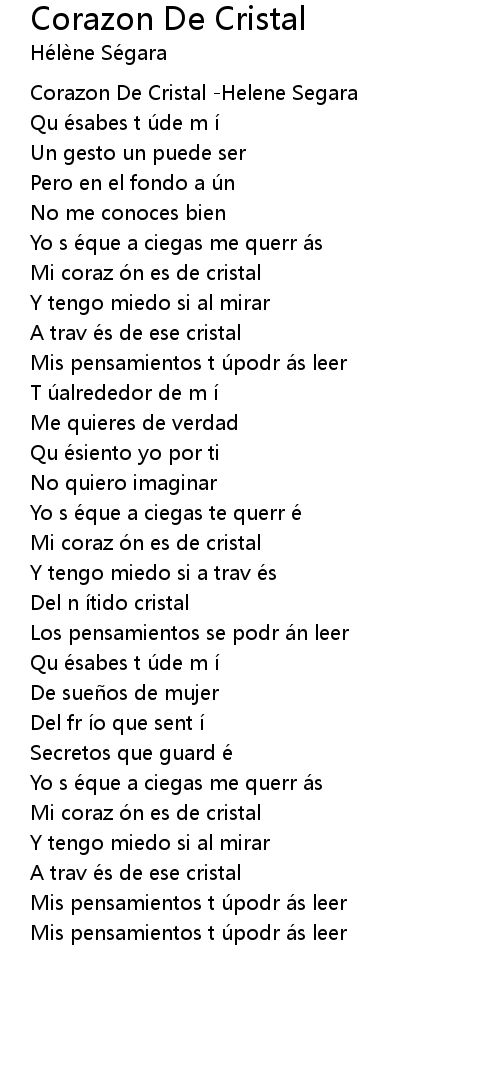 | [00:00.00] | Corazon De Cristal Helene Segara |