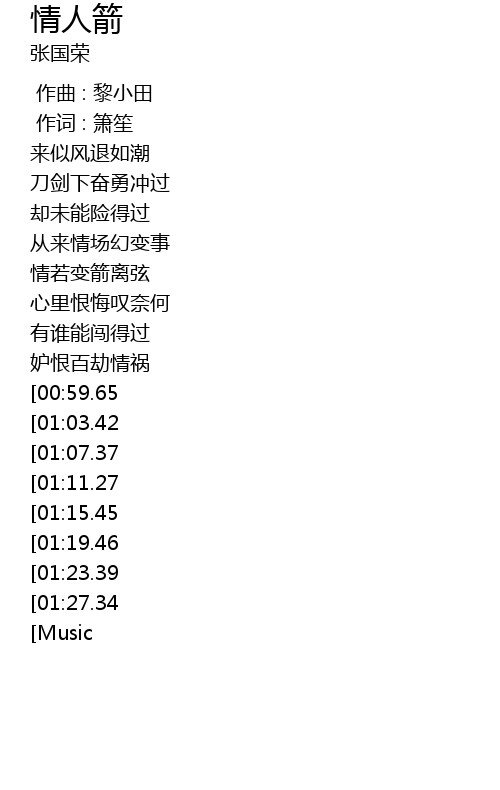 | [00:00.00] | 作曲 : 黎小田 |