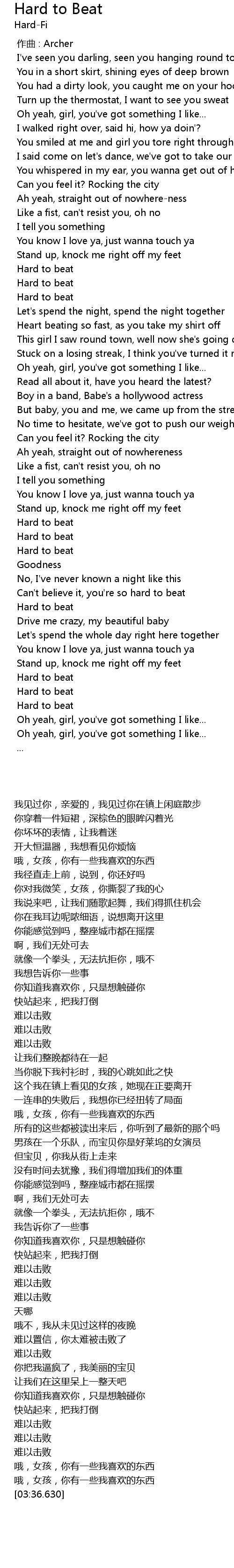 | [02:50.230] | Can't believe it, you're so hard to beat |
