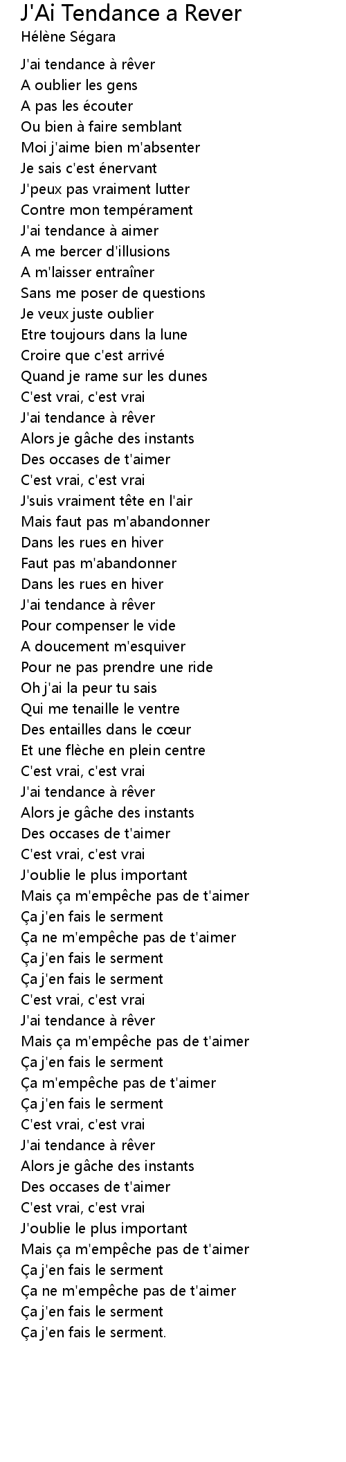| J' ai tendance a r ver | |