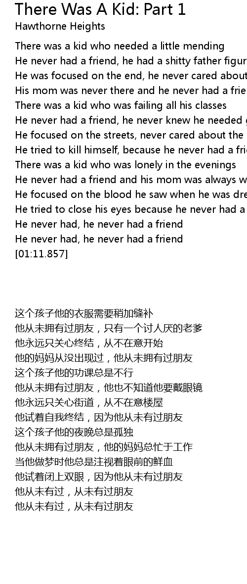 He never had, he never had a friend |