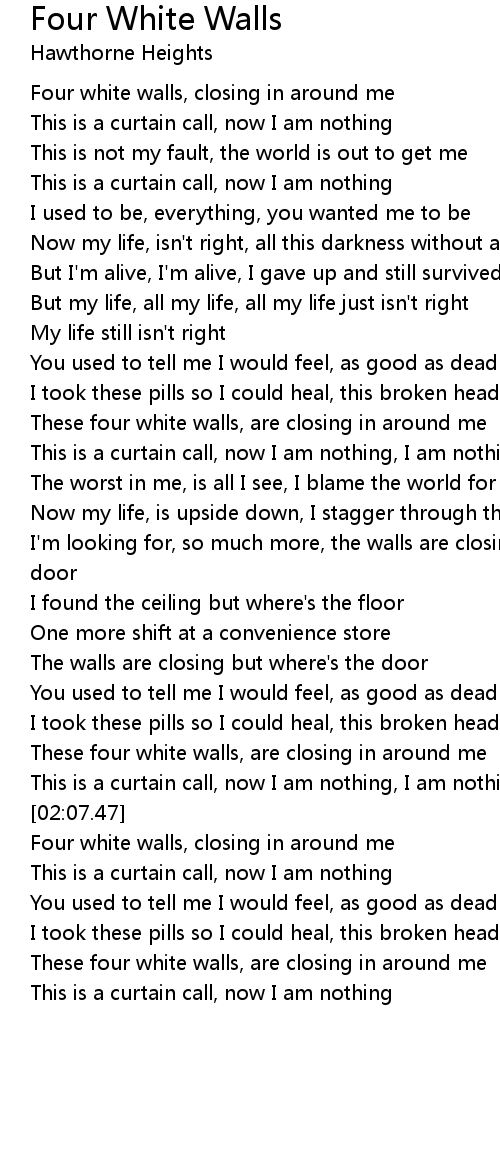 These four white walls, are closing in around me |