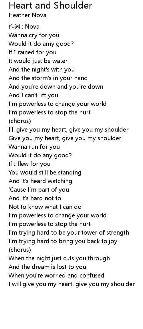 | Give you my heart, give you my shoulder | |