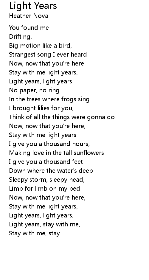 Stay with me light years, |