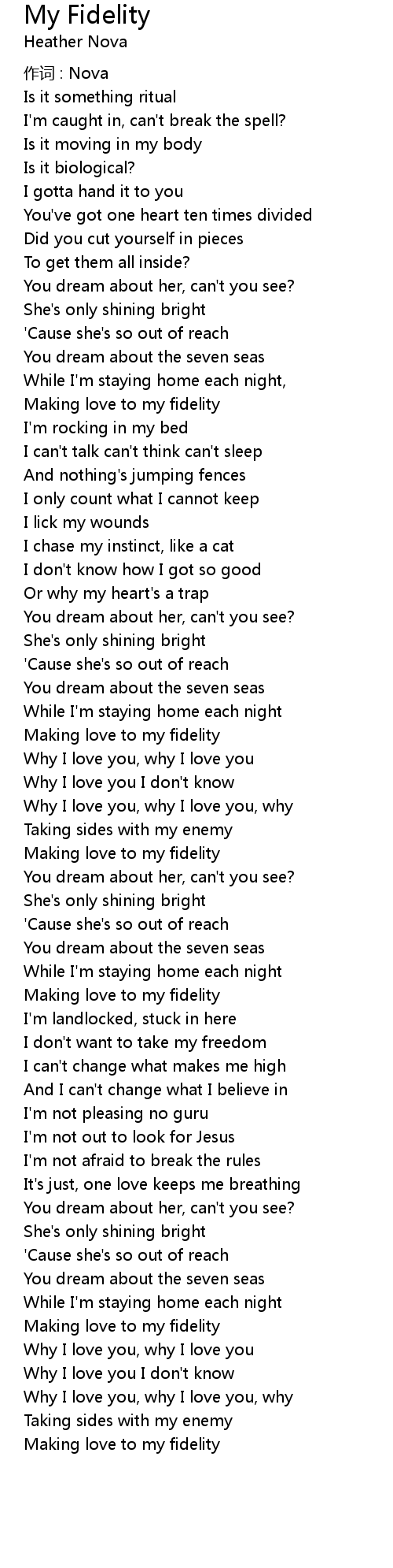 | Making love to my fidelity |
