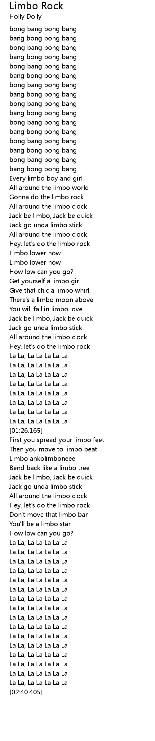 Jack be limbo, Jack be quick |