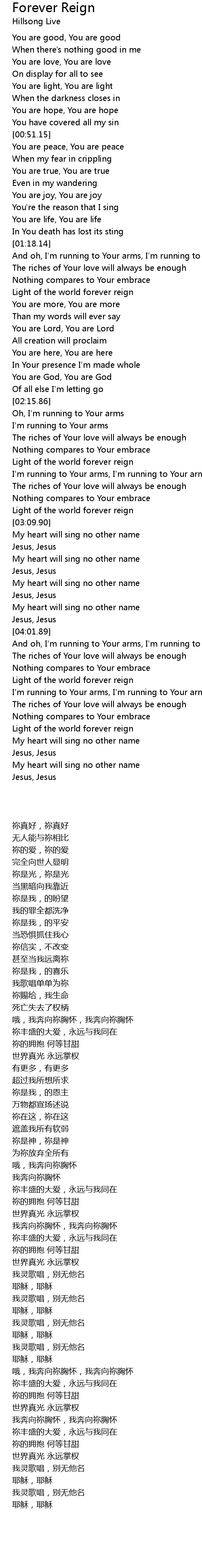 Light of the world forever reign |