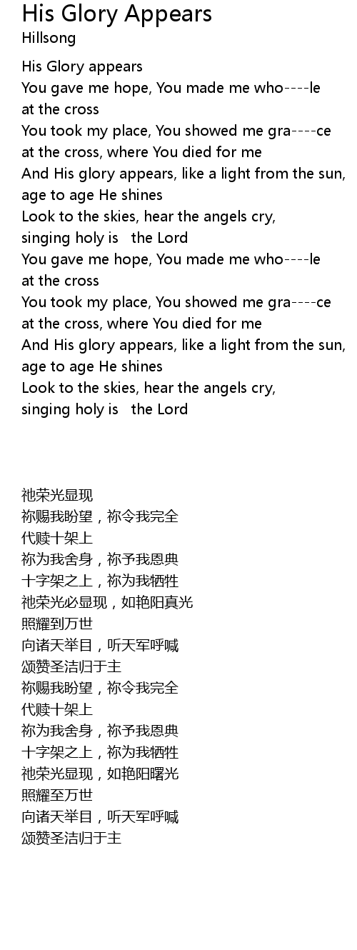His Glory appears |