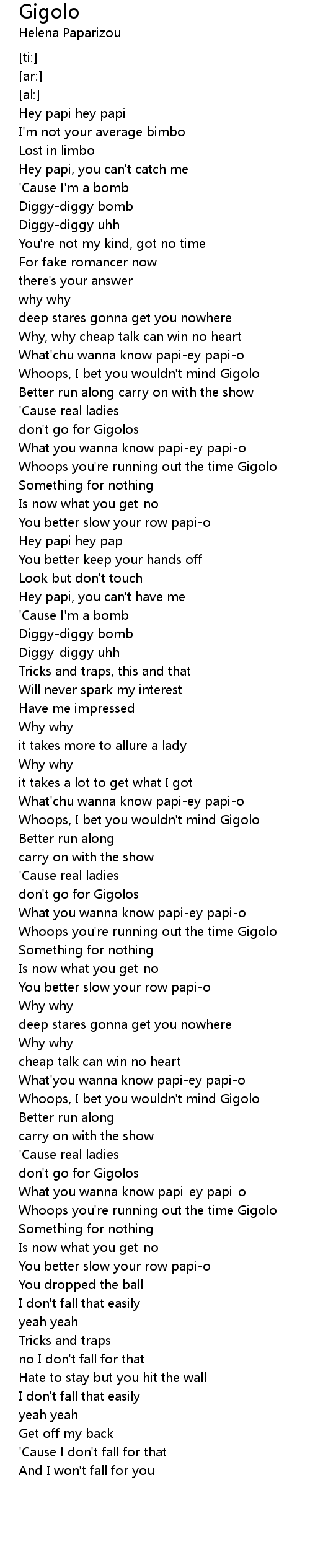 Whoops you're running out the time Gigolo |