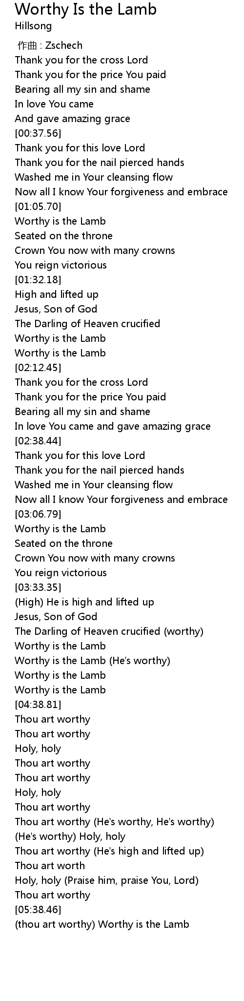| [05:39.46] | thou art worthy Worthy is the Lamb |