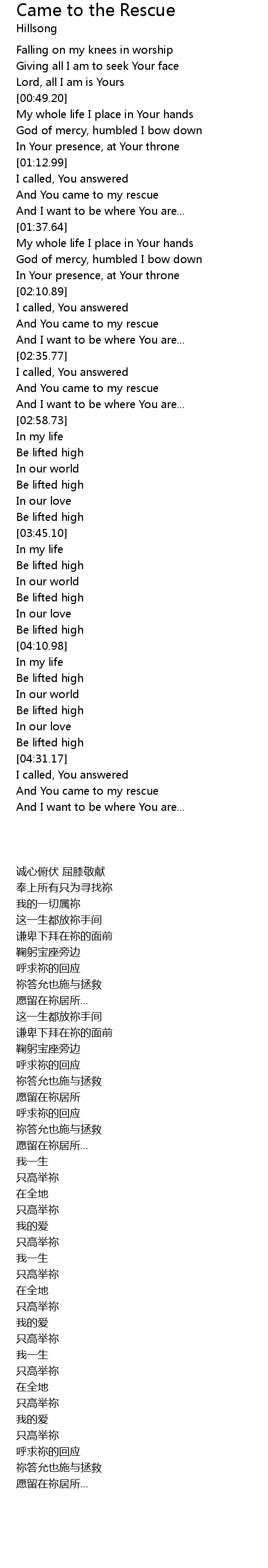 And You came to my rescue |