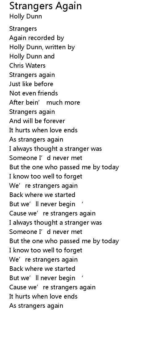 | Cause we’re strangers again | |
