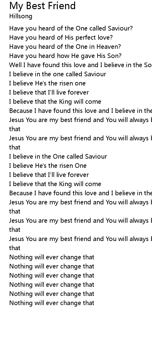 Jesus You are my best friend and You will always be nothing will ever change that |