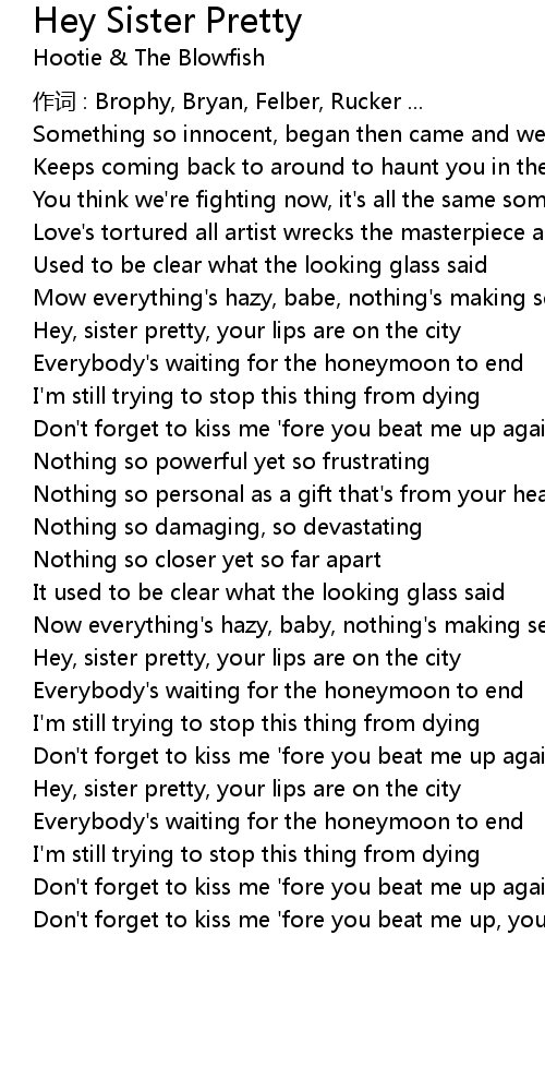 | Don' t forget to kiss me ' fore you beat me up again | |