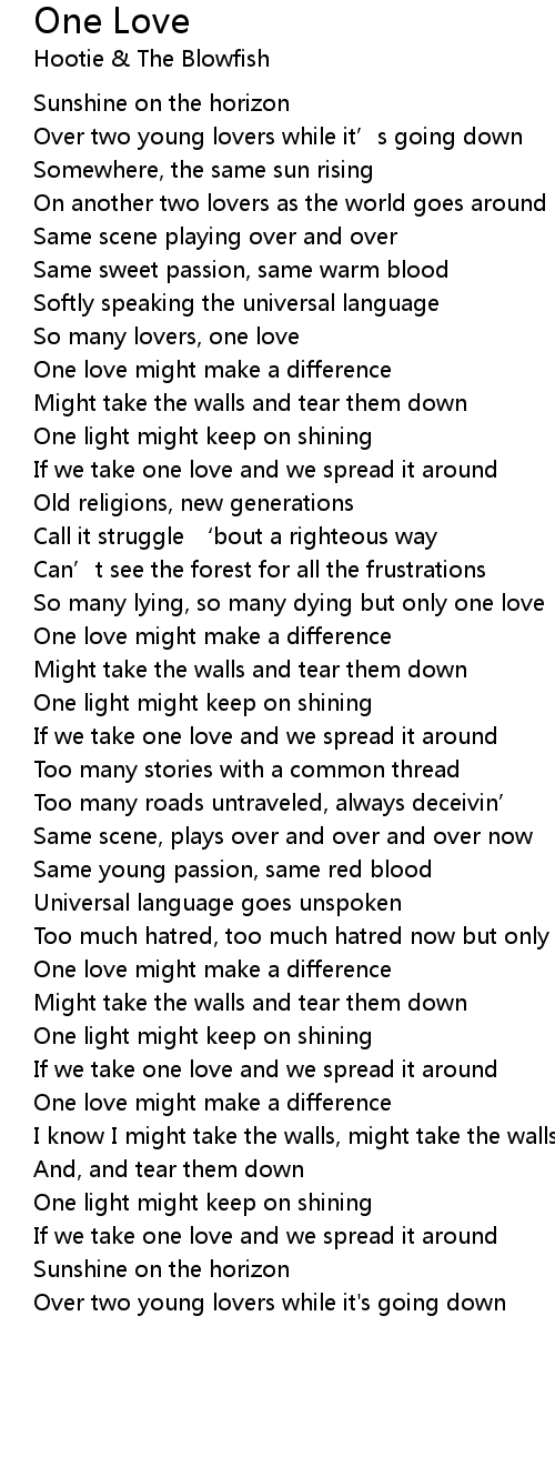 | Too much hatred, too much hatred now but only one love | |