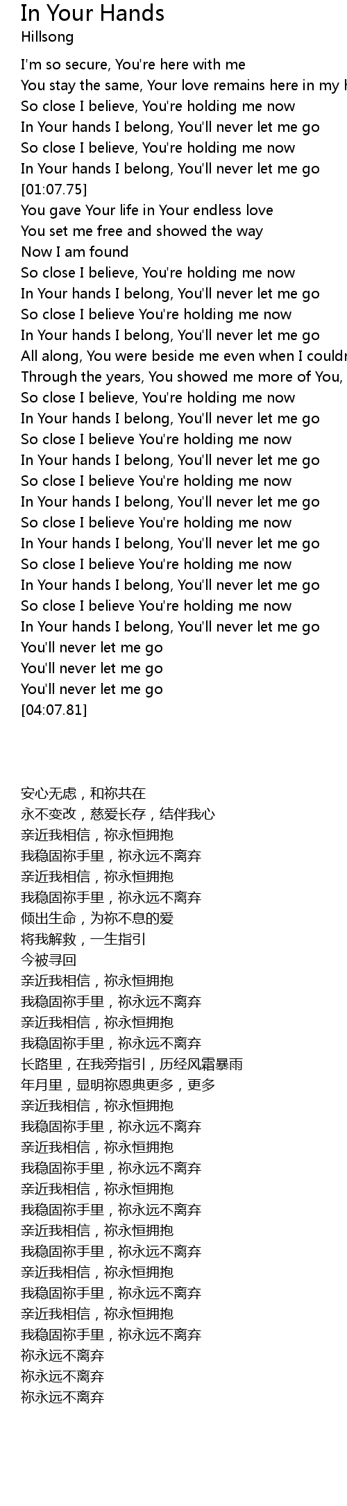 | [03:24.27] | In Your hands I belong, You'll never let me go |