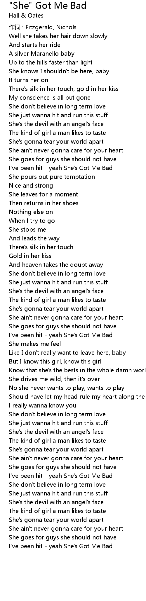 | 作词 : Fitzgerald, Nichols | |