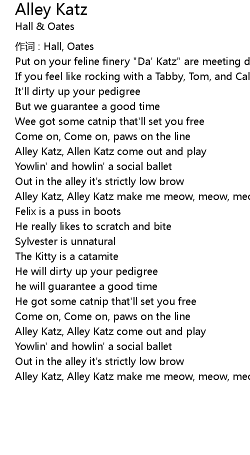 | Alley Katz, Alley Katz make me meow, meow, meow |
