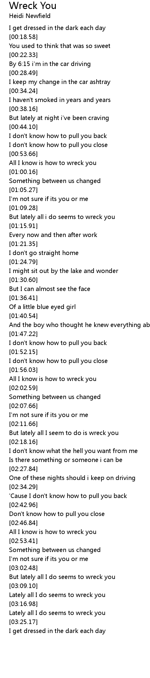But lately all i do seems to wreck you |