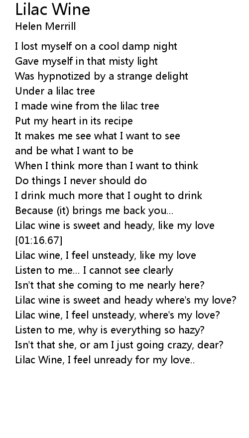 Lilac wine is sweet and heady where's my love? |