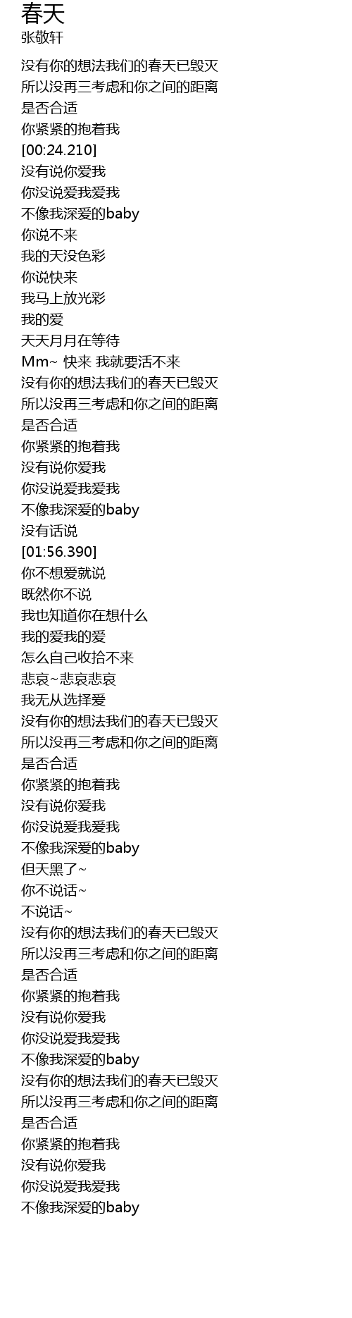 | [00:34.850] | bu xiang wo shen ai de baby |