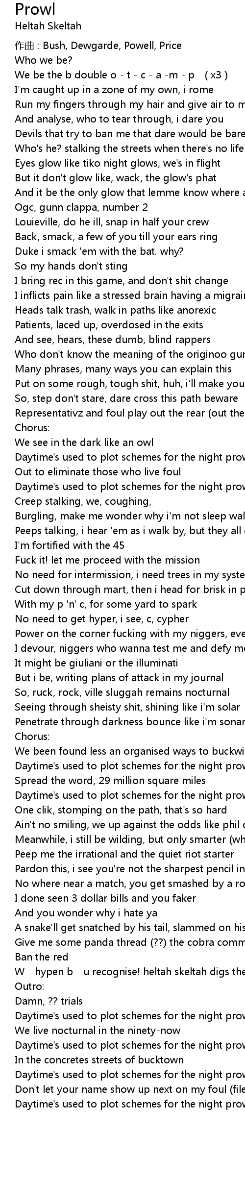 | So, ruck, rock, ville sluggah remains nocturnal | |