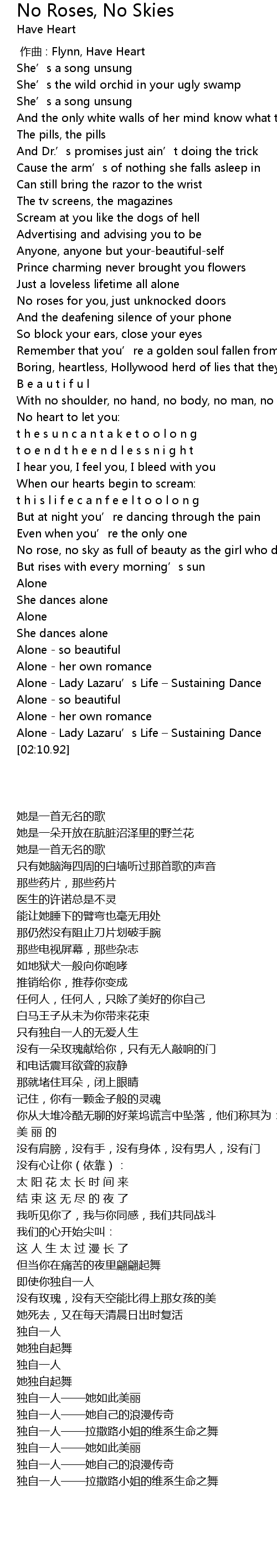 | [02:06.86] | Alone - Lady Lazaru’s Life – Sustaining Dance |