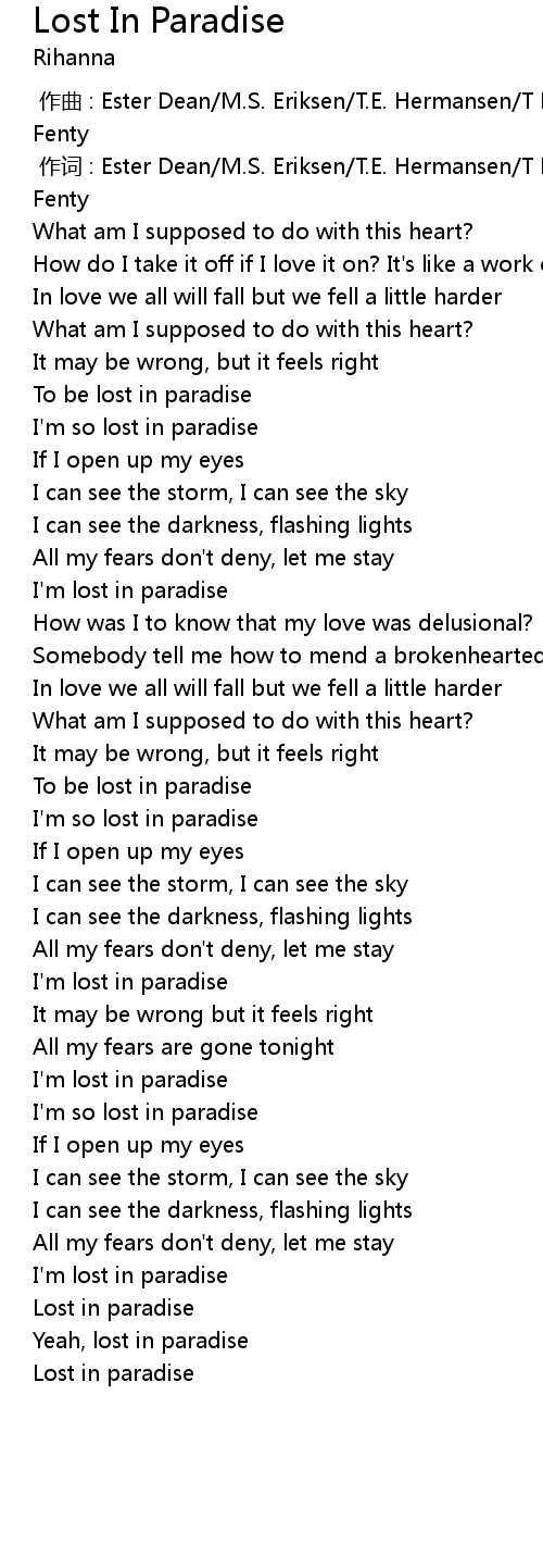 | [00:01.000] | 作词 : Ester Dean/M.S. Eriksen/T.E. Hermansen/T McKenzie/Robyn Fenty |